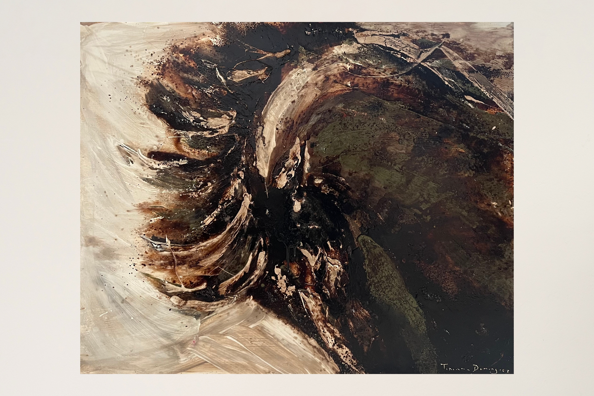 Brio is the awakened life force that we so often feel when connecting with horses. The experimental technique developed for this series of artworks explores the tension between organic and inorganic materials. Through a process of layering, the final figuration emerges. A creative process that takes joy in the unpredictability of the final result.