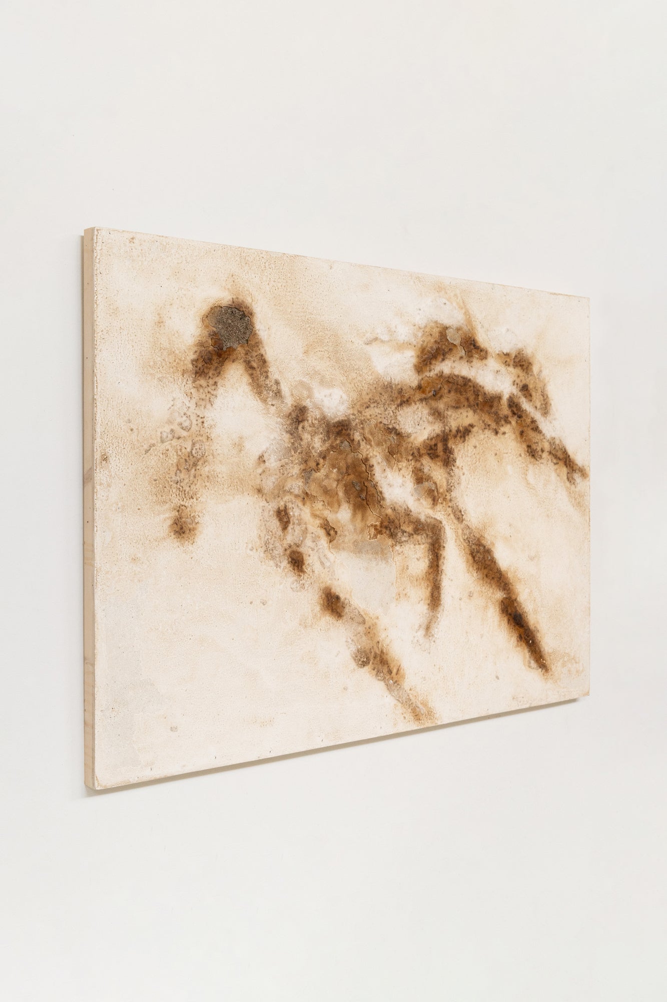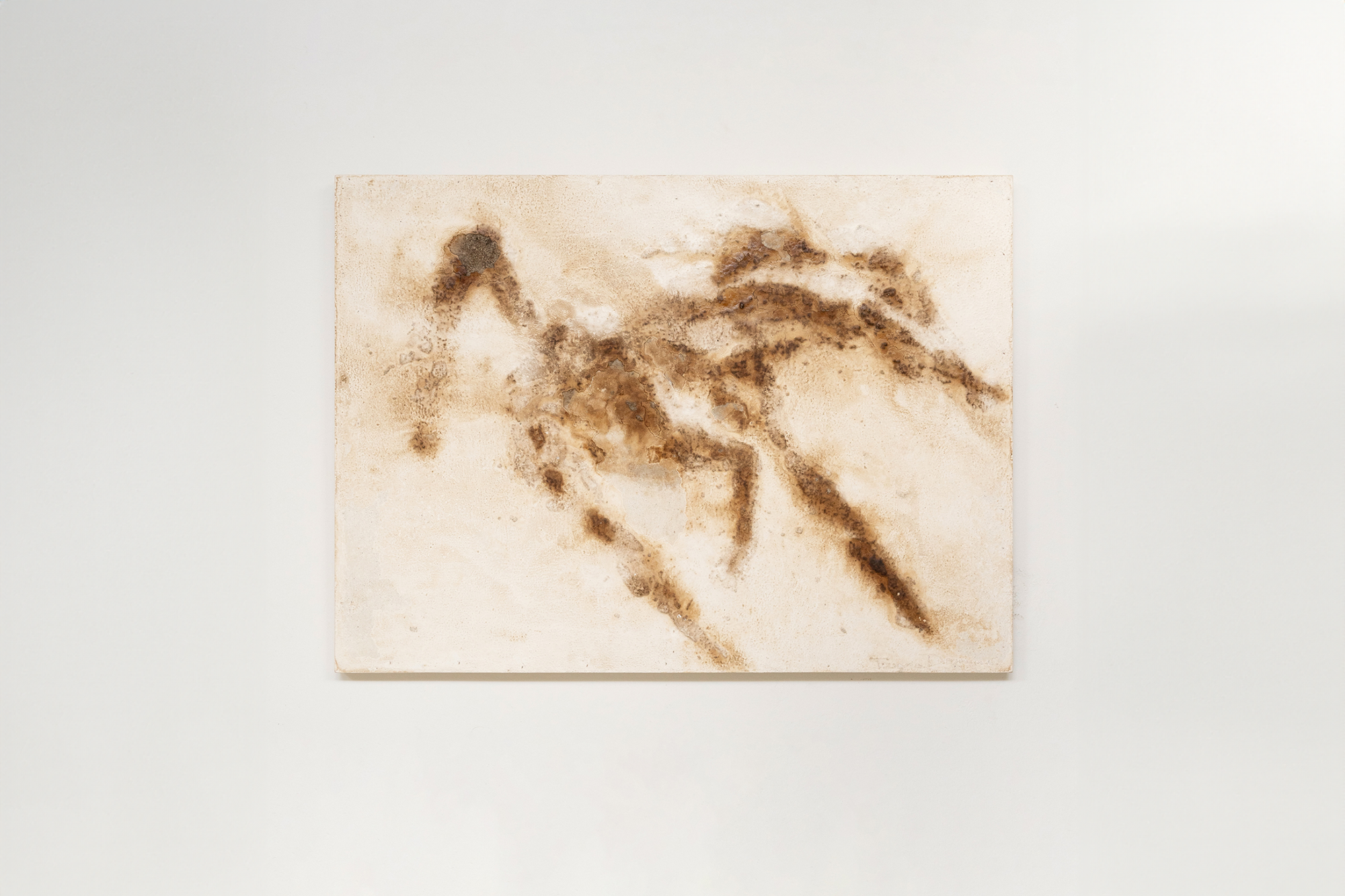 In my native Galician language, “dioivo” refers to intense rain. The experimental technique developed for this series of artworks explores the tension between organic and inorganic materials. Through a process of layering, the final figuration emerges. A creative process that takes joy in the unpredictability of the final result.