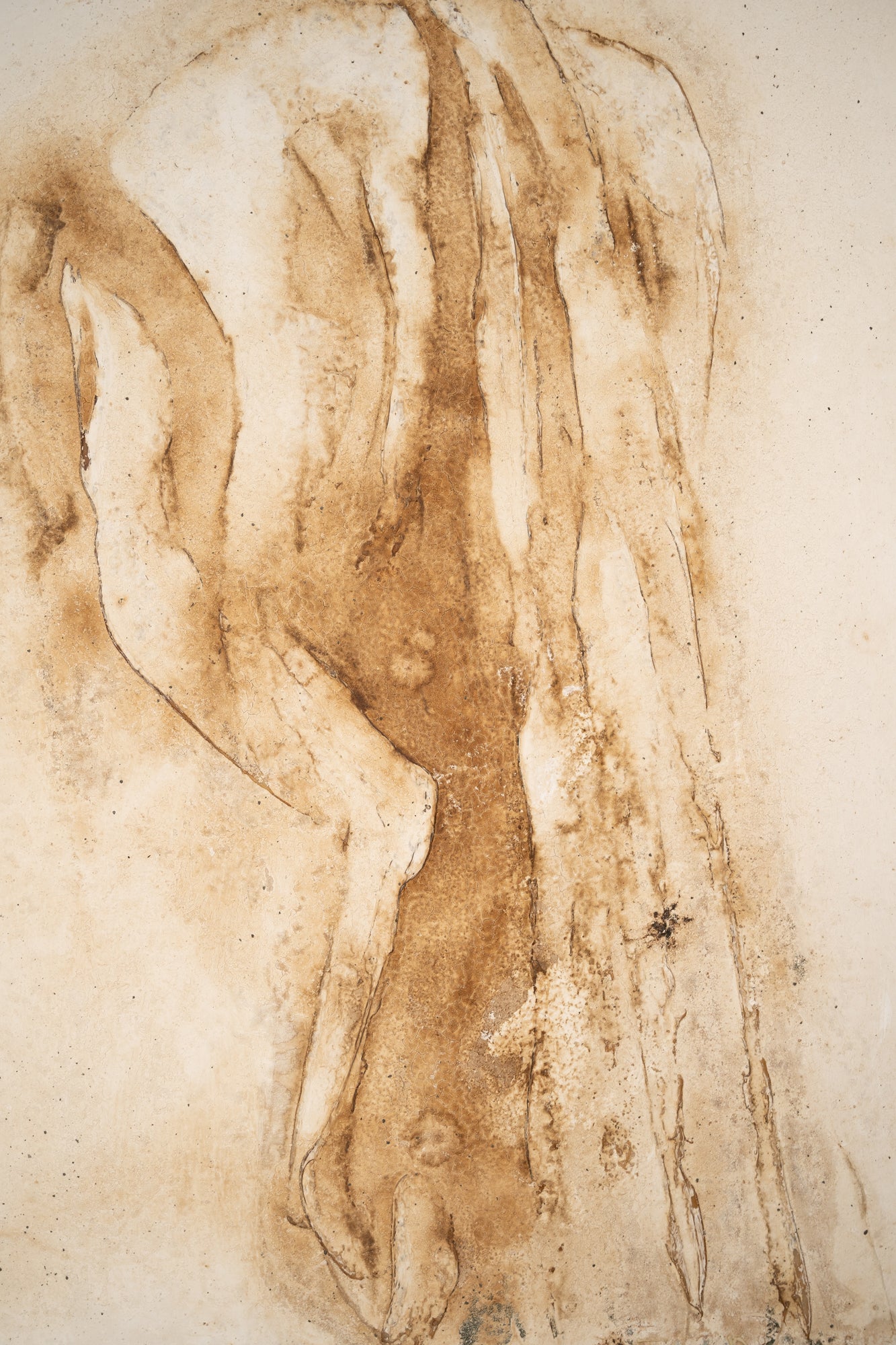 In “pausa”, strength and stillness come together. The experimental technique developed for this series of artworks explores the tension between organic and inorganic materials. Through a process of layering, the final figuration emerges. A creative process that takes joy in the unpredictability of the final result.