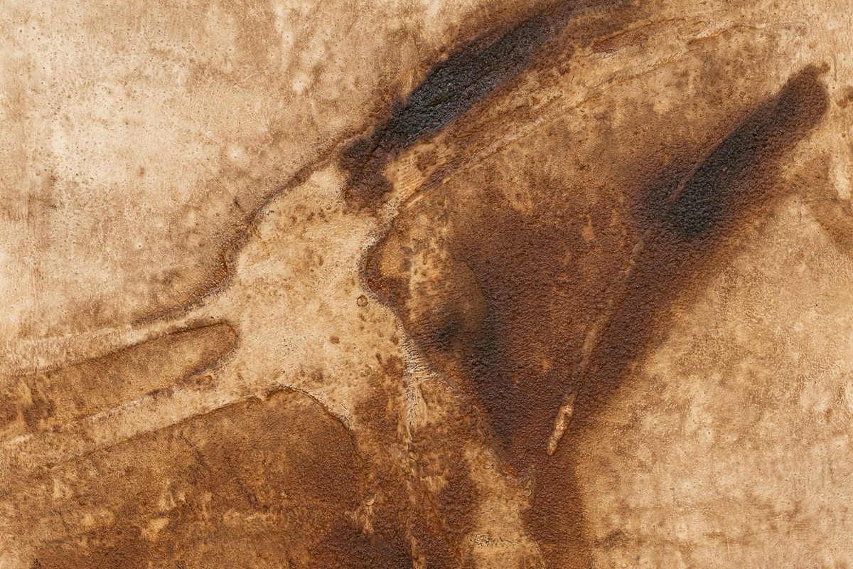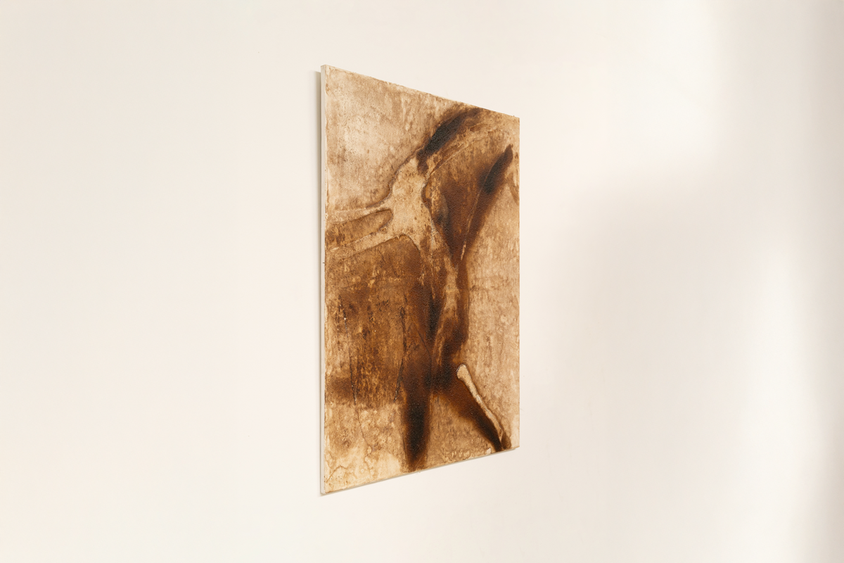 “Sosiego” reflects the tranquility of nature. The experimental technique developed for this series of artworks explores the tension between organic and inorganic materials. Through a process of layering, the final figuration emerges. A creative process that takes joy in the unpredictability of the final result.